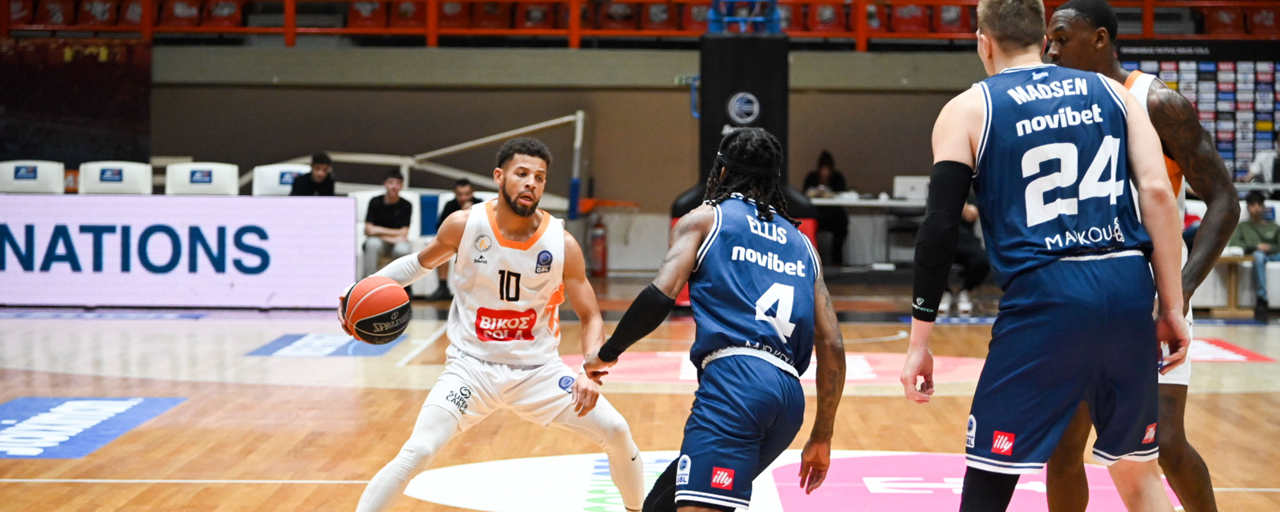 Οι Πατρινοί έκαναν εντυπωσιακό πρώτο ημίχρονο καθώς σημείωσαν 57 πόντους, ανοίγοντας από νωρίς τη διαφορά. Οι φιλοξενούμενοι είχαν το προβάδισμα μέχρι και το 7ο λεπτό (14-16). Από εκείνο το σημείο όμως ο Προμηθέας Βίκος Cola έτρεξε επιμέρους 16-2 με αποτέλεσμα να προηγθεί με 30-18 στις αρχές της δεύτερης περιόδου. Ενα νέο σερί 9-0 έφερε τους γηπεδούχους στο +20 μόλις στο 13' (39-19) ενώ πριν ολοκληρωθεί το πρώτο μέρος προηγήθηκαν ακόμη και με +27 (57-30).