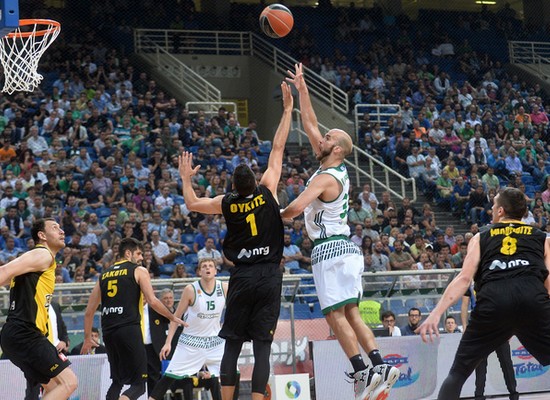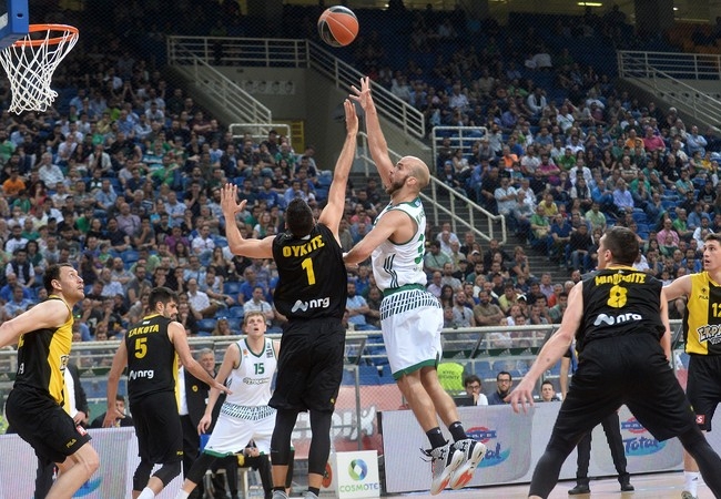 Με ηγέτη τον Νικ Καλάθη (23 πόντοι και 5 ασίστ) ο Παναθηναϊκός Superfoods επικράτησε ως γηπεδούχος στο ΟΑΚΑ της ΑΕΚ (80-70) και έκανε το 1-0 στην ημιτελική σειρά των πλέι οφ της STOIXIMAN.GR Basket League. Οι «πράσινοι» έβαλαν τις βάσεις της νίκης τους, στο τρίτο δεκάλεπτο, όταν με πολύ πιεστική άμυνα, τον Καλάθη να σκοράρει 8 πόντους και επιμέρους σκορ 25-11 ανέτρεψαν την υπέρ της Ένωσης διαφορά των 4 πόντων του πρώτο ημίχρονου (39-35), και προηγήθηκαν με 10 (60-50).
