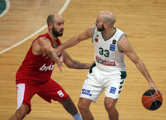 Με πέντε πόντους από τον Τίμα και ένα καλάθι του Λεντέι ο Ολυμπιακό έχτισε ένα σερί 7-0 που τον έφερε μπροστά στο σκορ με 26-20 στα μέσα της δεύτερης περιόδου όμως ο Παππάς με έξι προσωπικούς του πόντους έφερε και πάλι τις δύο ομάδες σε κοινή αφετηρία (26-26). Η ανατροπή (12-1 επιμέρους σκορ) του Παναθηναϊκού συνεχίστηκε με τους «πράσινους» να προσπερνούν και με 32-27 πριν ο Πρίντεζης μειώσει στο 32-29 του πρώτου ημιχρόνου.