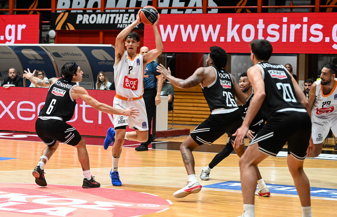 Στον πρώτο γύρο: Οι «πορτοκαλί» προηγήθηκαν ακόμη και με 14 πόντους (52-38 στο 20:13) ωστόσο οι «ασπρόμαυροι» έκαναν την τέταρτη –με τα σημερινά δεδομένα- μεγαλύτερη ανατροπή της σεζόν. Επικράτησαν στο παιχνίδι της Πάτρας με 75-73 (Λέιτον Χάμοντς 21π, 5/10τρ, 6ρ, Ρομπ Γκρέι 12π, 4/10δ. – Στέφεν Μπράουν 19π, 5/7δ, 3/7τρ, 7ρ, 6ασ, Νίκος Περσίδης 13π, 3/4τρ, Μπεν Μουρ 13π, 11ρ).